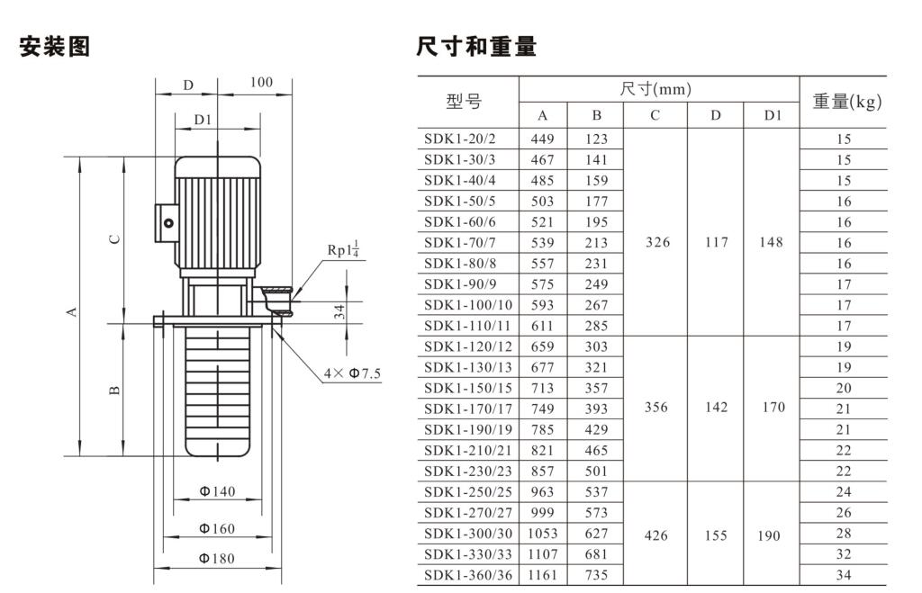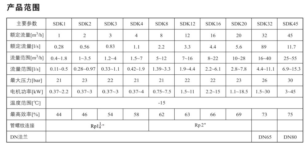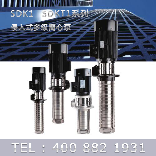 SDK1/SDKT1為配用標(biāo)準(zhǔn)電機(jī)的非自吸立式多級(jí)離心泵,電機(jī)軸和泵軸用聯(lián)軸器直接聯(lián)接的結(jié)構(gòu)。為滿足水槽或容器的安裝深度,可安裝空套的腔體來改變泵本身的侵入深度。